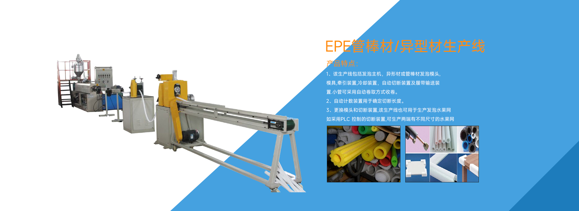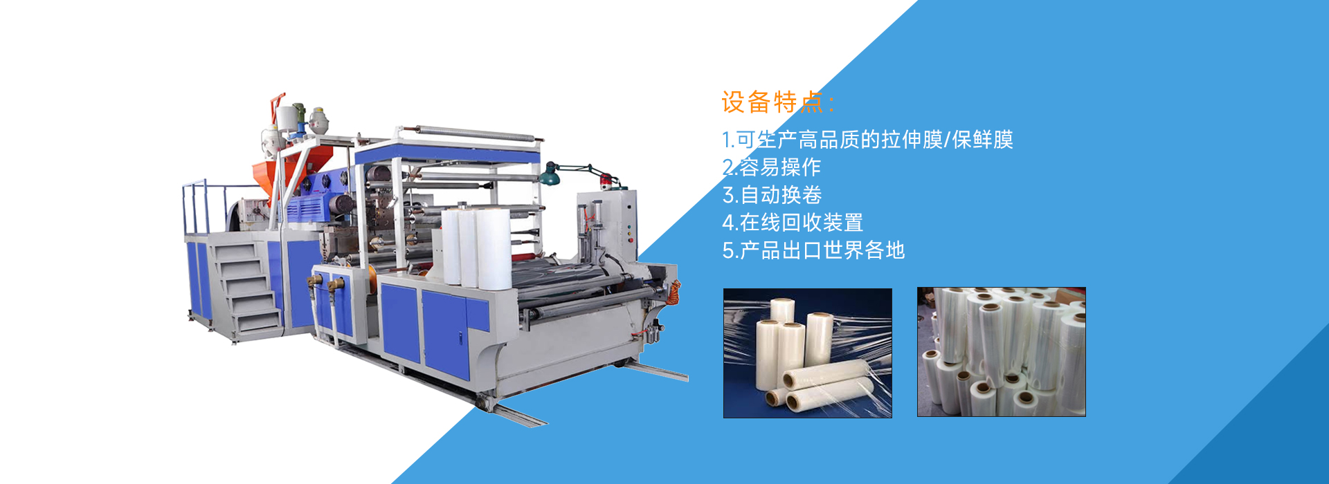 經過多年的發(fā)展,現在,公司的產品涵蓋了EPE珍珠棉系列設備、流涎膜系列設備、塑料袋整套設備,廢舊塑料回收造粒系列設備及其它塑料加工設備。在產品的研發(fā)和制造技術領域里,不斷導入全新概念,將產品全面導向自動化。產品暢銷東南亞,中東,南美,俄羅斯及其它各地,贏得了國內外客戶的高度信賴和贊譽。此外...